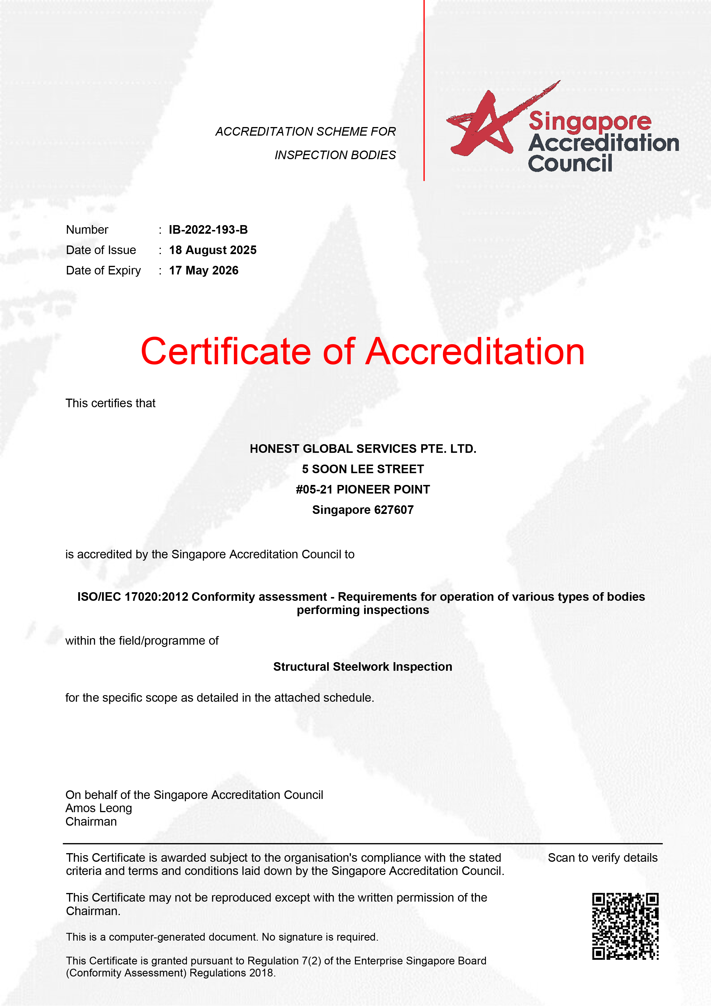 • Honest Global Service Pte Ltd is a Singapore based company, established in 2019. The company has positioned itself as an independent inspection, Testing’s service provider, and Provide third-party services to our Clients and consulting service in the Asia Pacific region.